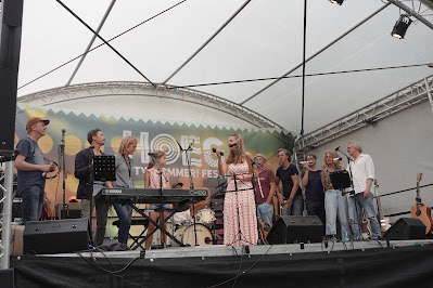 Zweiter Tag auf der Ansgaribühne mit fast gleichem Programm und viel mehr Publikum. Ich bin erst etwas später gekommen, da ich noch Museumsluft geschnuppert hatte. Es herrschte eine ausgelassene Stimmung auf dem Ansgarikirchhof, den die Künstler an diesem Tag in "Platz der Freundschaft" umbenannt hatten. Es war eine Freude zuzuhören. Der Auftritt von Daisy ging nahtlos in das Cover-Set der S&W-Künstler über. Für Martin war es anstrengend, da er fast jede Band am Schlagzeug begleitet hat, aber es hat ihm Spaß gemacht. Und Spaß gemacht hat es wohl allen, wenn man nach dem Auftritt in die vergnügten Gesichter geschaut hat.